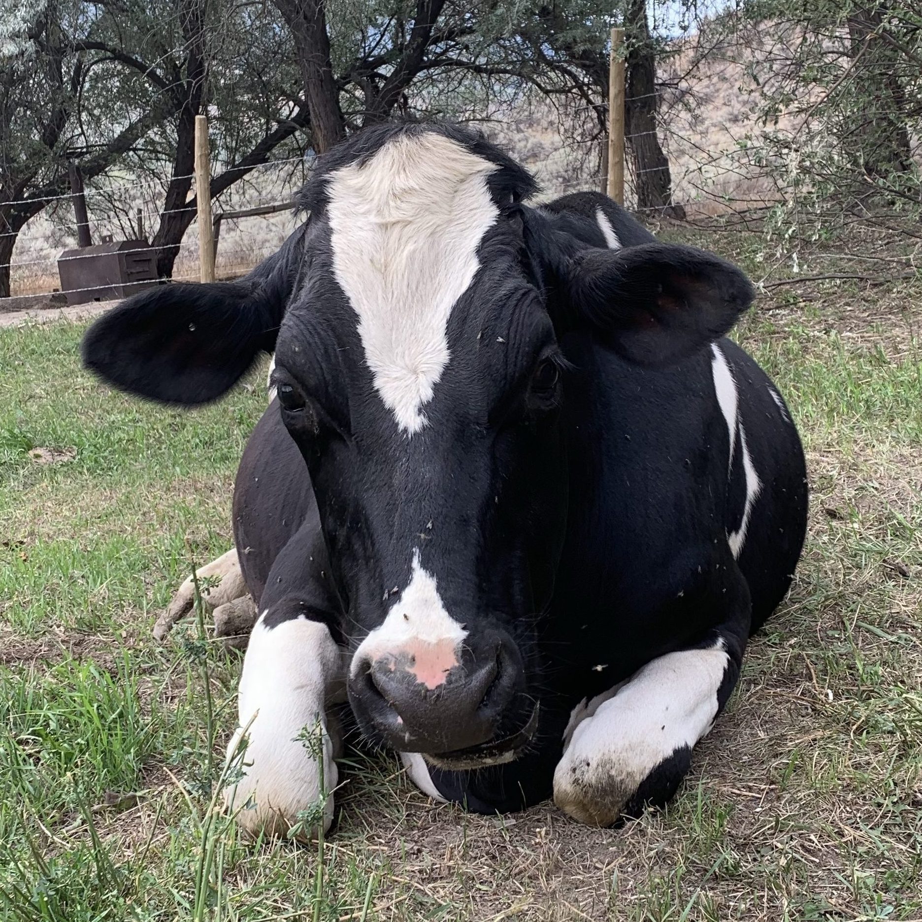 On that unforgettable day, as the founder walked into their pen to pick two, the largest (although extremely underweight) and most curious calf picked her! He was instantly named Isaiah (cow names that the founder had chosen years before, when the sanctuary was only a far-off dream). Over the past 2 years, Isaiah has grown into a very big boy & he is still growing & will keep growing until he is 4-5 years old! He also has a very big personality. He has continued to be very outgoing, overly curious, & mischievous, but also has a gentle & sensitive side to him. He is also the leader of the cow herd.